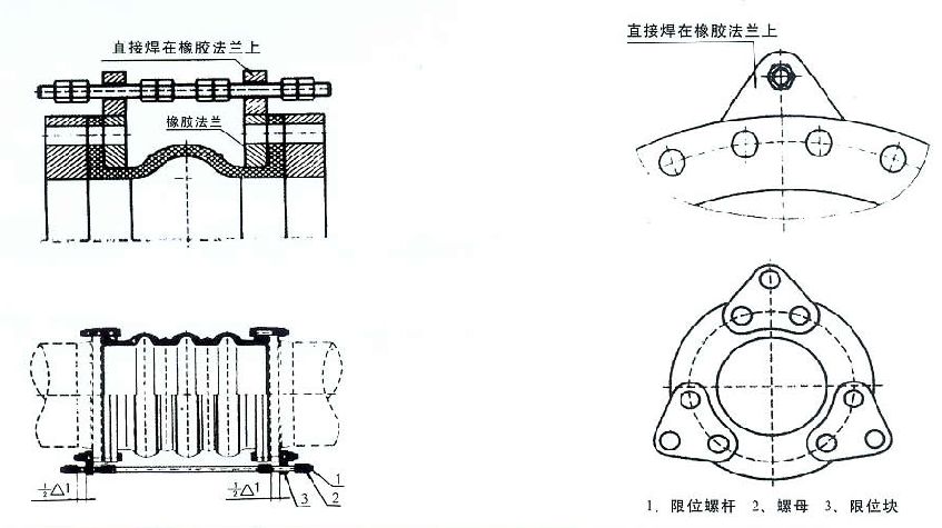限位裝置與可曲撓橡膠接頭合理搭配使用,在管道—般連接中或在有位移要求的管線(xiàn)線(xiàn)路中使用時(shí),能起到限定位移量的作用.當可曲撓橡膠接頭與泵、閥相連接使用時(shí),在可曲撓橡膠接頭上配用限位裝置,可起到傳力作用,是鋼制傳力接頭的理想替代產(chǎn)品。